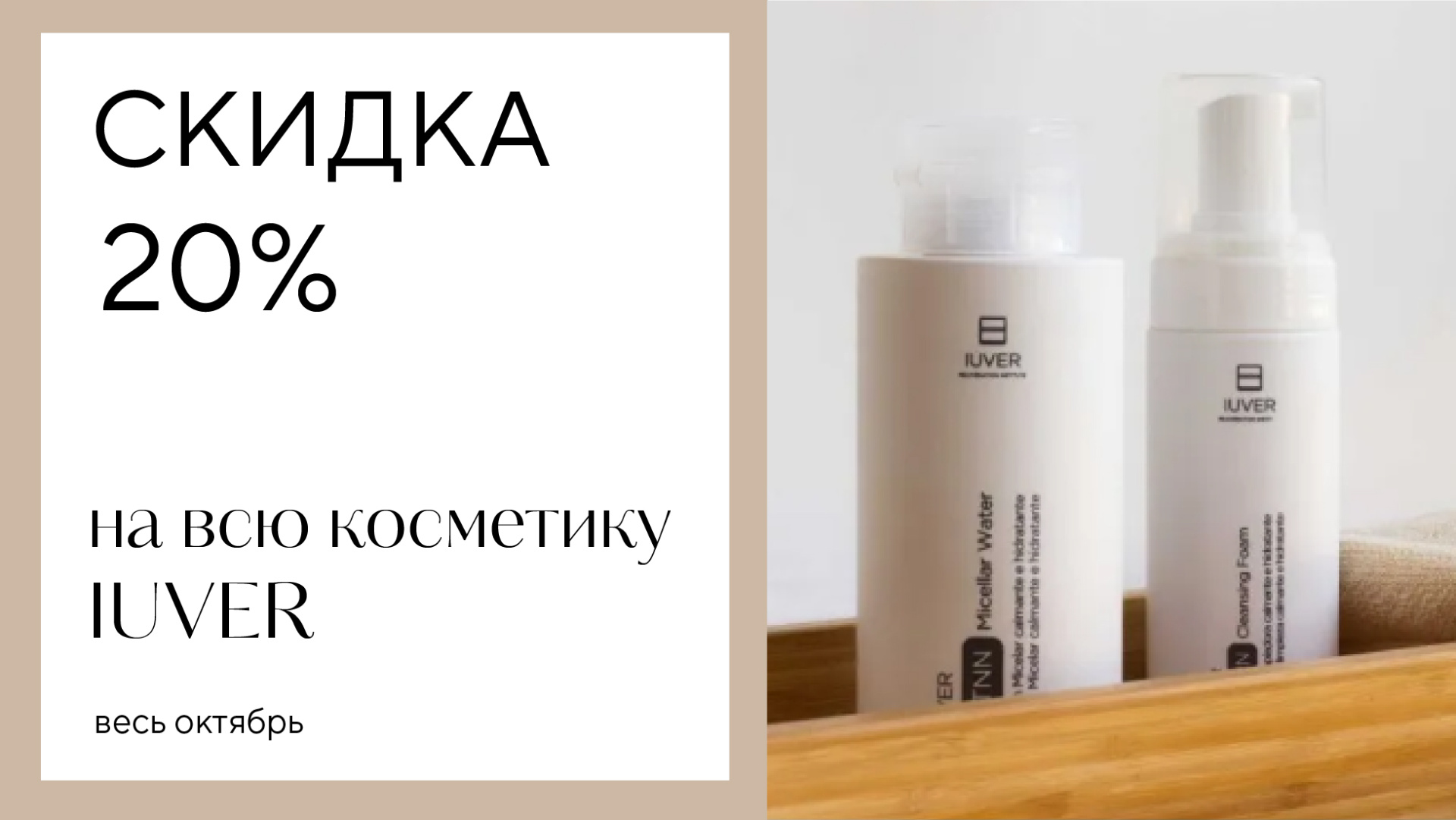 Только в октябре в Клинике Пирогова — скидка 20% на всю профессиональную косметику IUVER и Cellviderm, а также еженедельные скидки на премиальные средства Maria Galland и Holy Land.